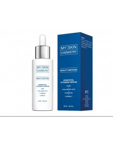 My Skin Chemistry Essential Vitamins Serum to wysoko skoncentrowane serum antyoksydacyjne stworzone, aby chronić skórę przed stresem oksydacyjnym, pobudzać syntezę kolagenu i przywracać jej zdrowy, promienny wygląd.