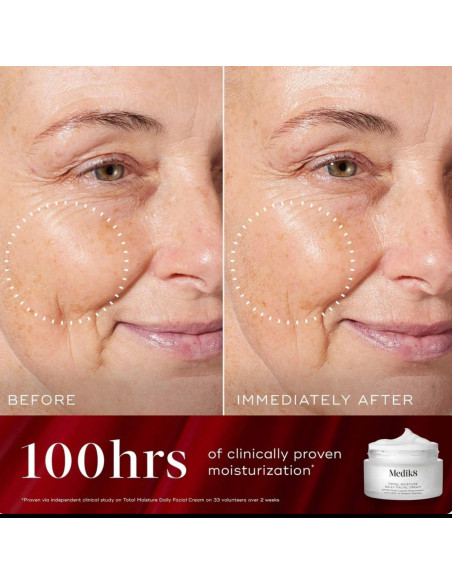 Następnie rozprowadź Total Moisture Daily Facial Cream, aby zamknąć wilgoć i podkreślić efekt promiennej cery.