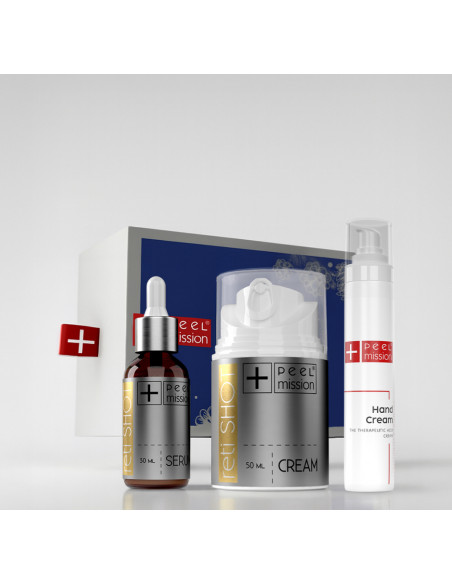 W zestawie znajduje się Peel Mission Krem do rąk 50 ml GRATIS, stanowiący atrakcyjny dodatek sprzedażowy i element zwiększający wartość zestawu w oczach klienta.